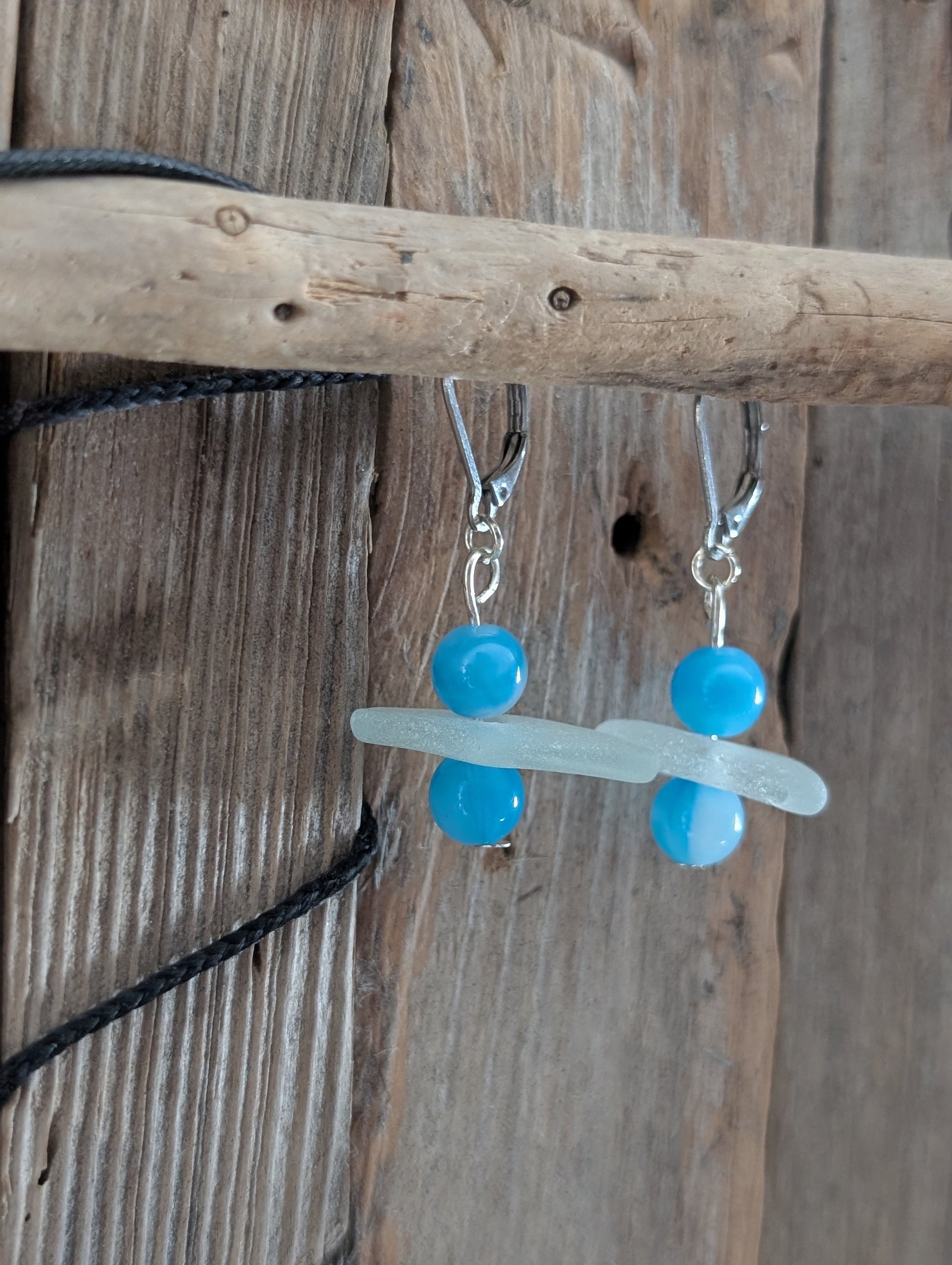 Blue Beads & Beach Glass Earrings