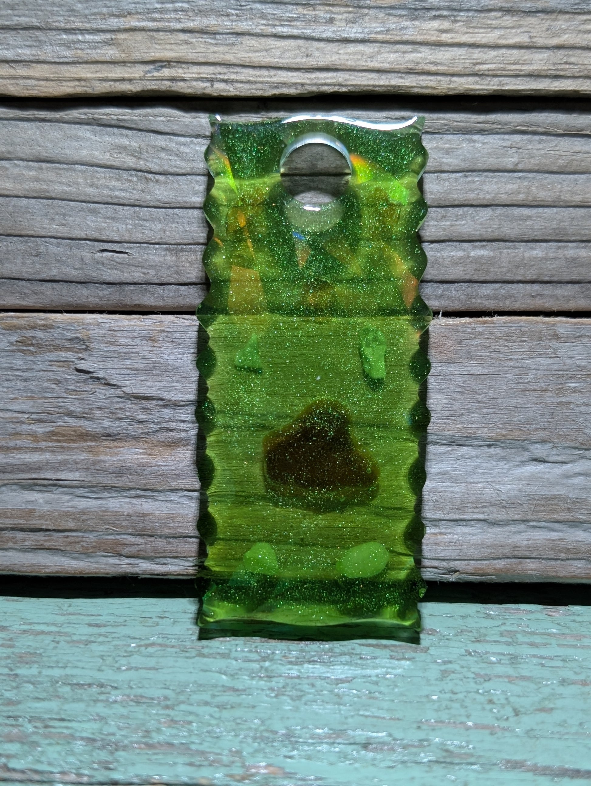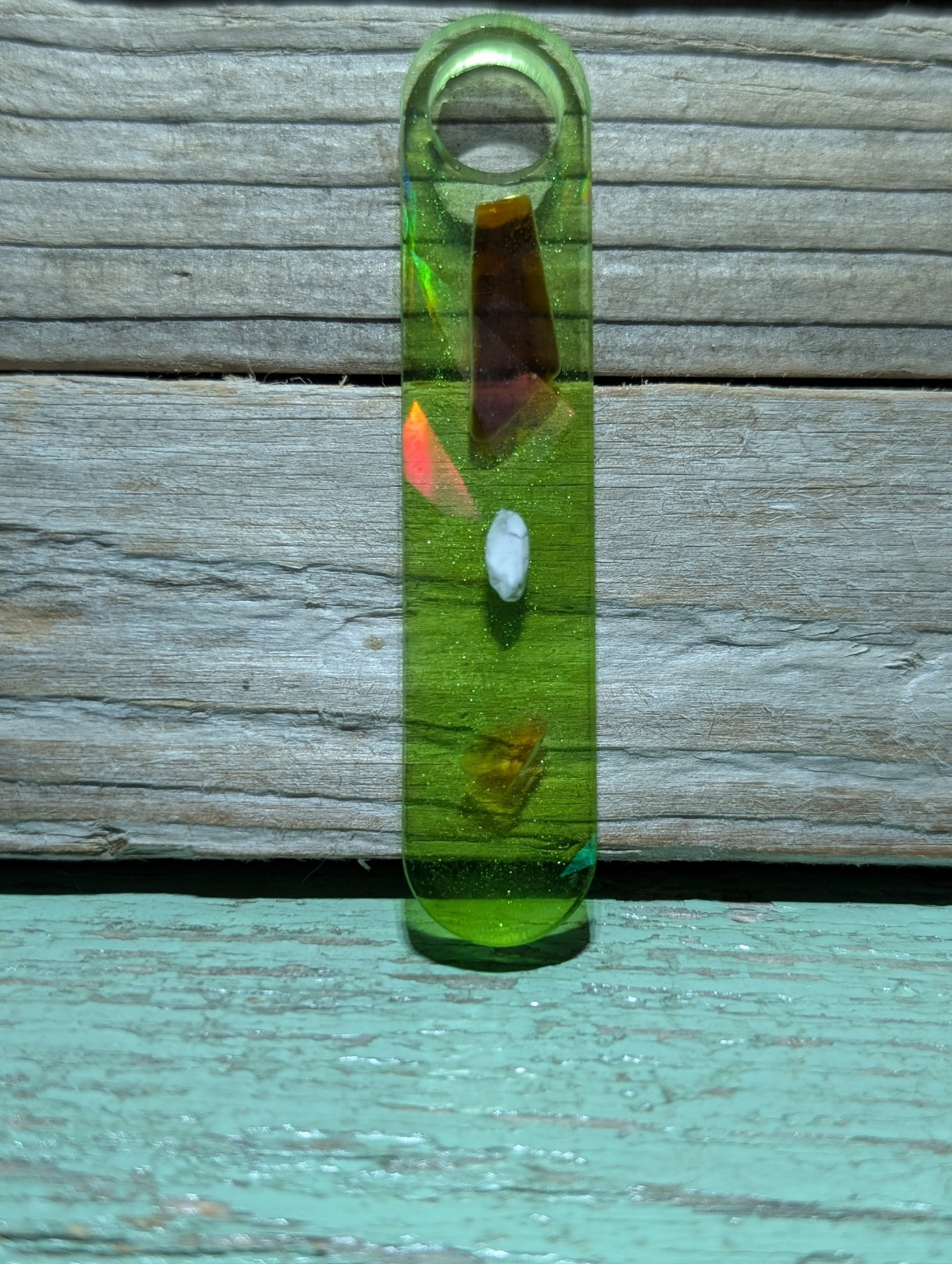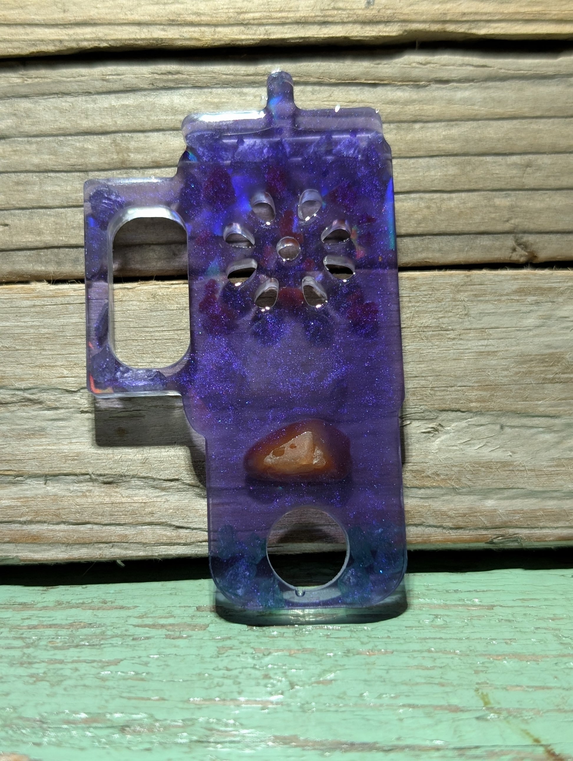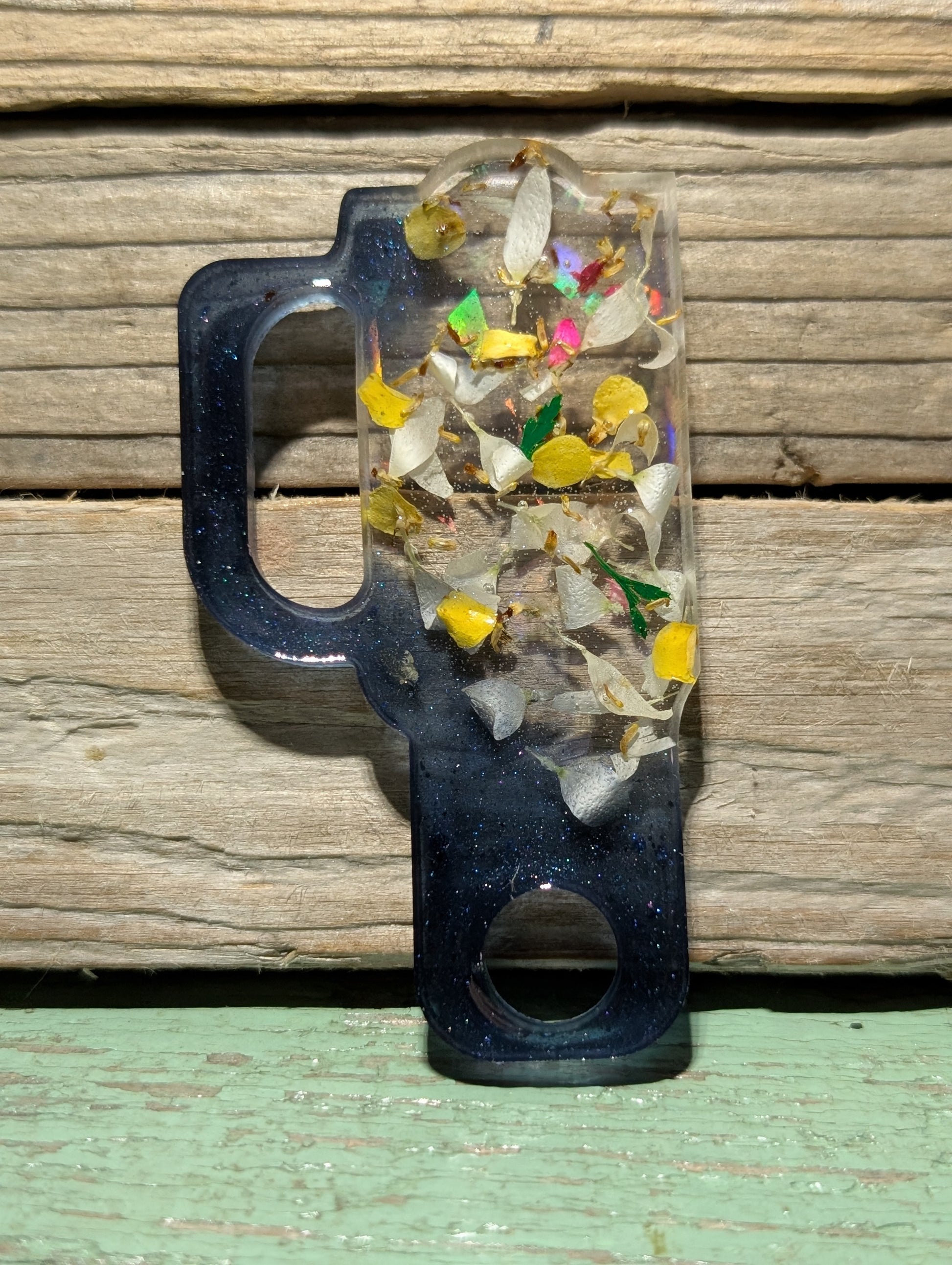 Made from a dazzling halographic mold and epoxy resin, these beauties flaunt genuine Atlantic Ocean beach treasures like tumbled glass, shell, stones and driftwood.
